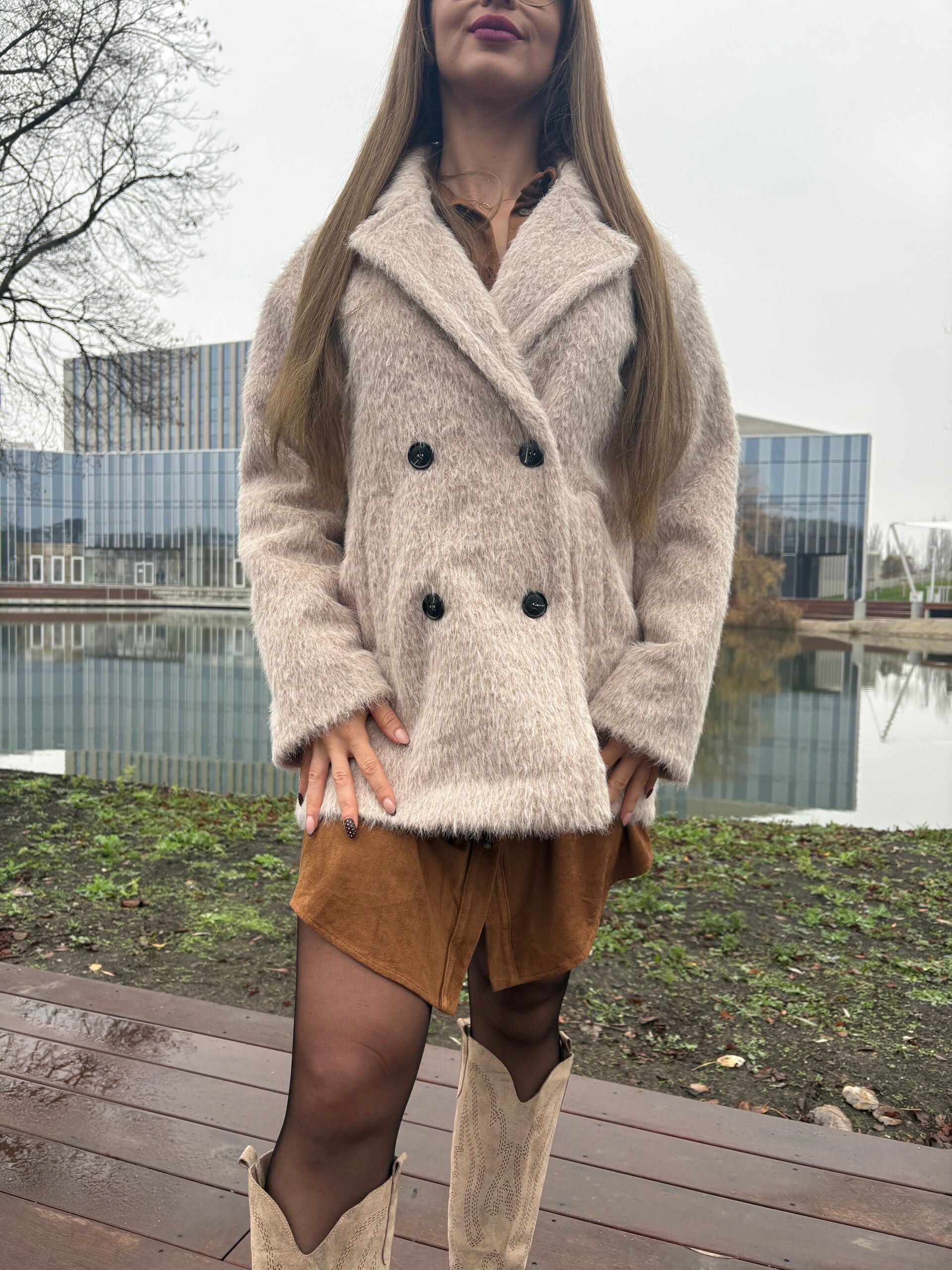 Wykonany z wysokiej jakości materiału, płaszcz doskonale łączy w sobie funkcjonalność i modę