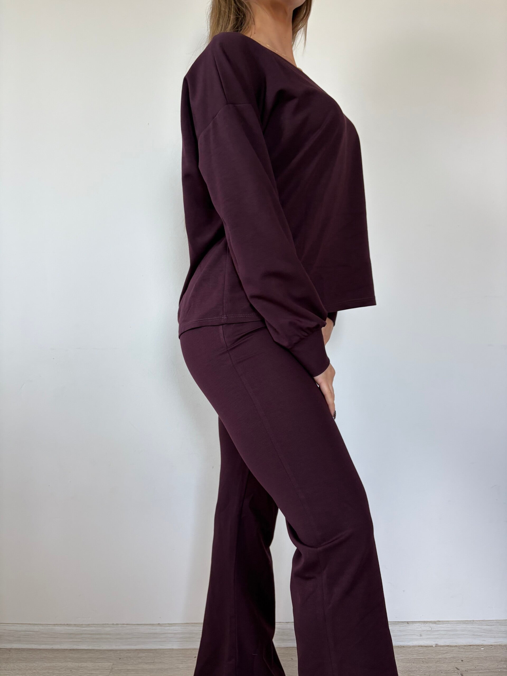 Rozkloszowany komplet sportowy z długim rękawem (śliwka)