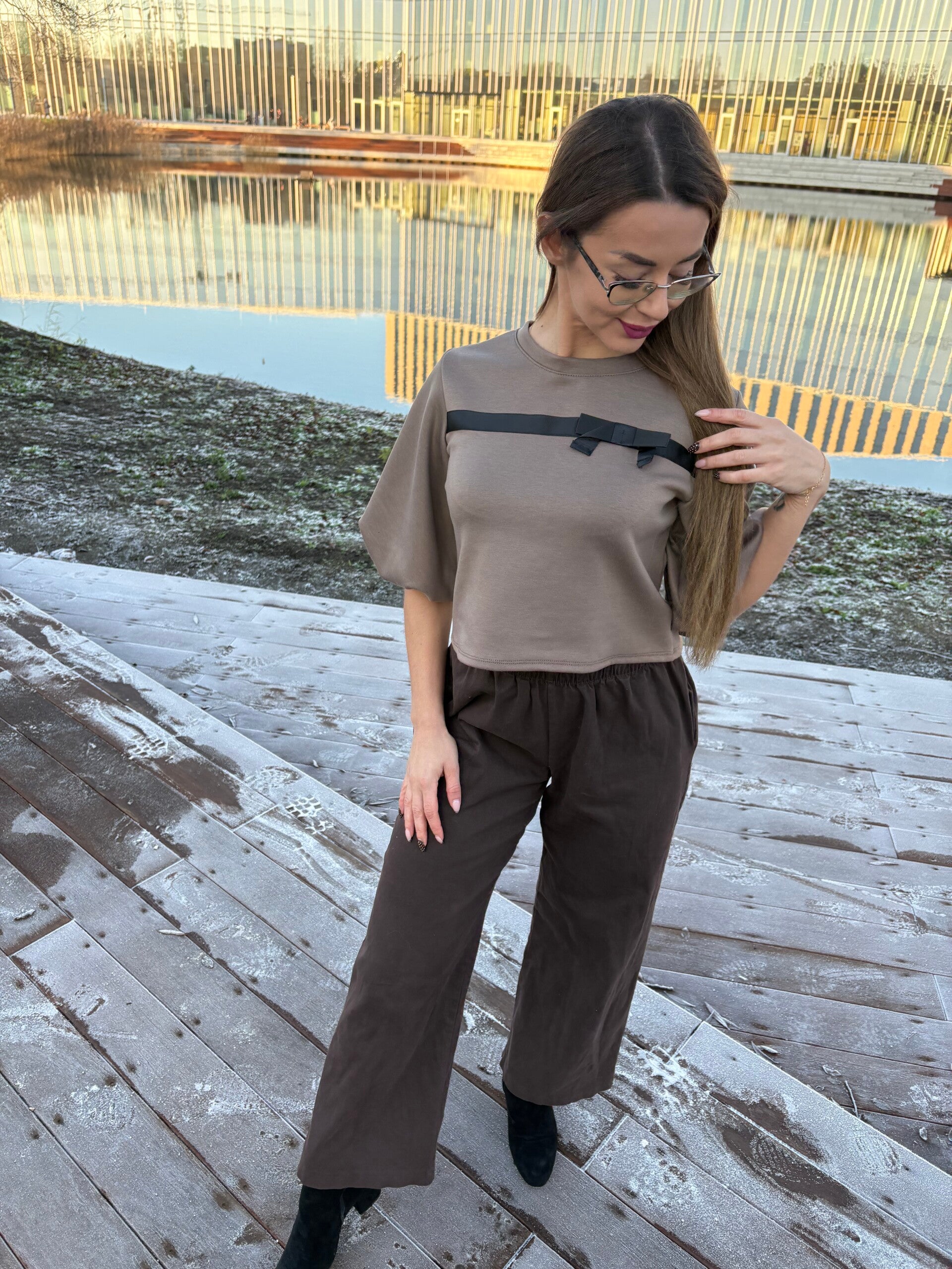 Bluza z bufiastymi rękawami 3/4 i z kokardą
