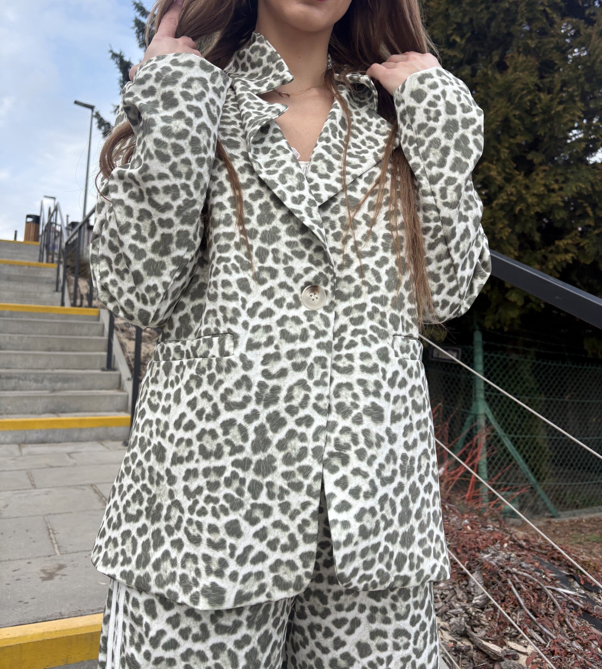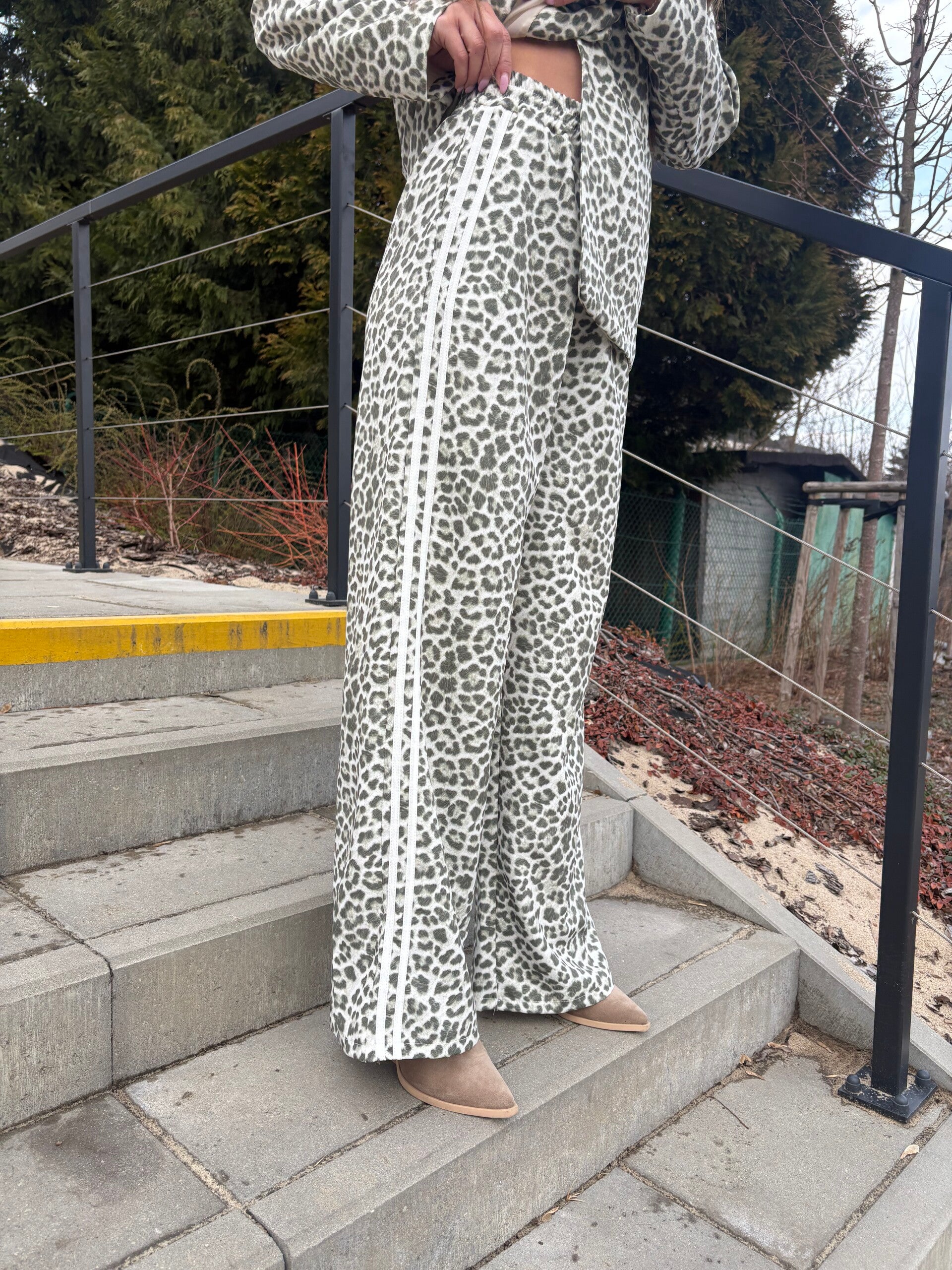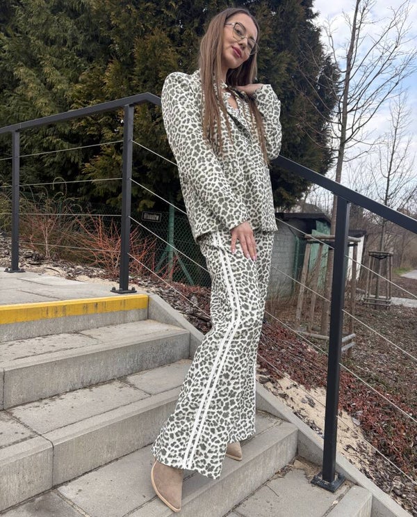 Zestaw z długą marynarką i długimi spodniami typu dzwony - zieleń